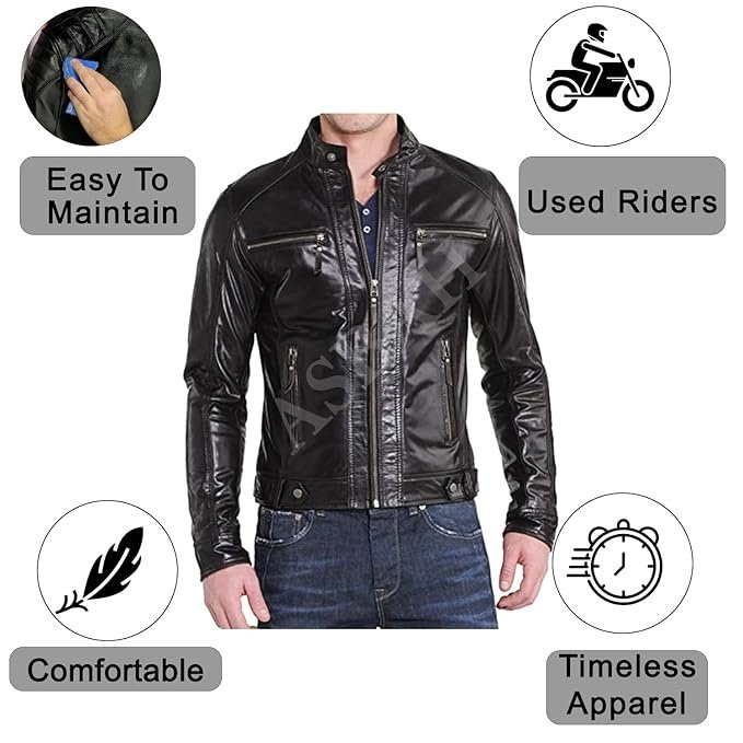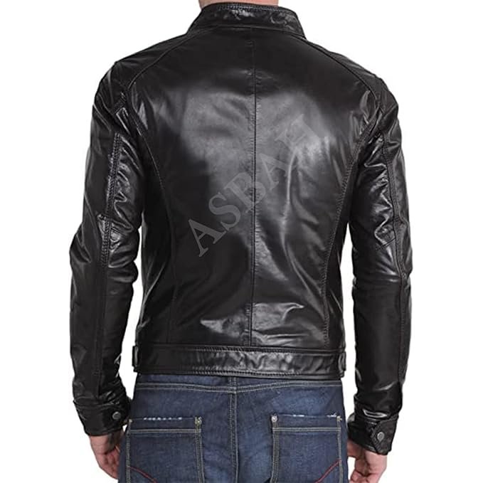 100% Genuine Leather Jacket -ASBAH Men’s Pure Classy look Real Lambskin Genuine Leather Biker Jacket Slim fit
