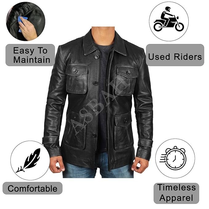 100% Genuine Leather Jacket -ASBAH Men’s Pure Classy look Real Genuine Leather Biker Jacket Slim fit 100% Original
