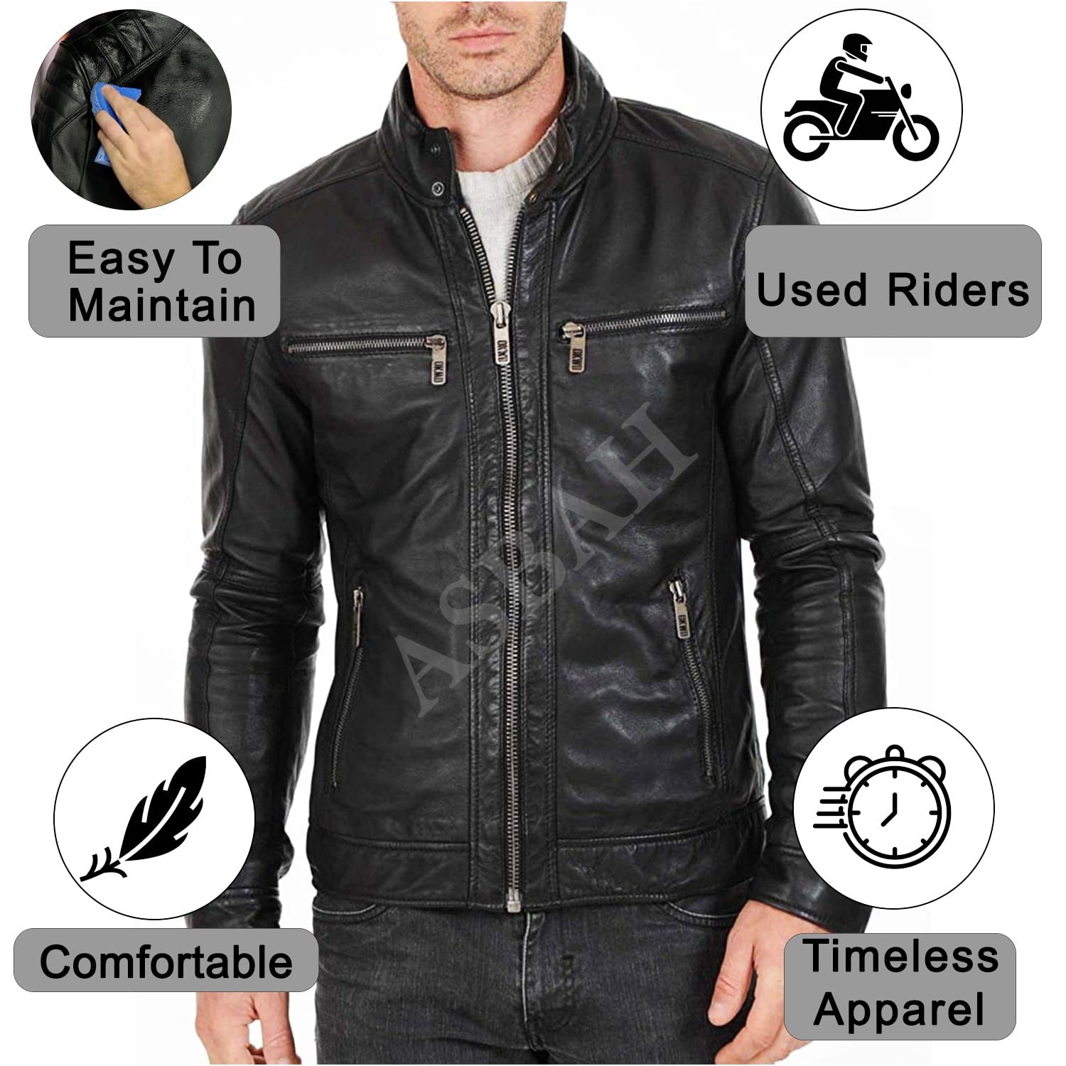 100% Genuine Leather Jacket -ASBAH Men’s Pure Classy look Real Lambskin Genuine Leather Biker Jacket Slim fit